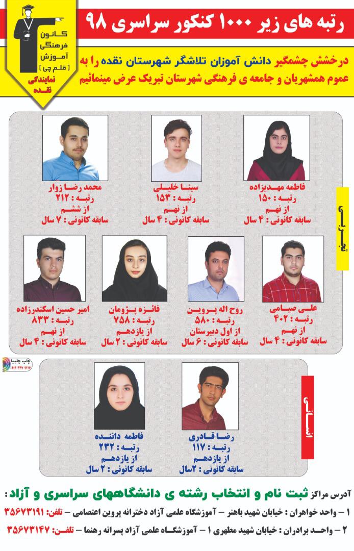 رتبههای زیر 1000 نقده در کنکور 98 را در زیر مشاهده می کنید