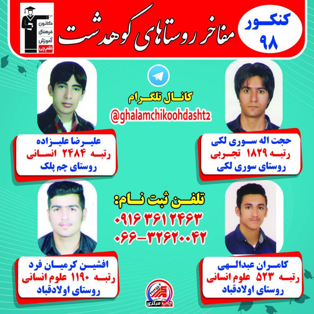 درخشش دانش آموزان روستایی کوهدشت در کنکور 98 را در زیر مشاهده کنید .