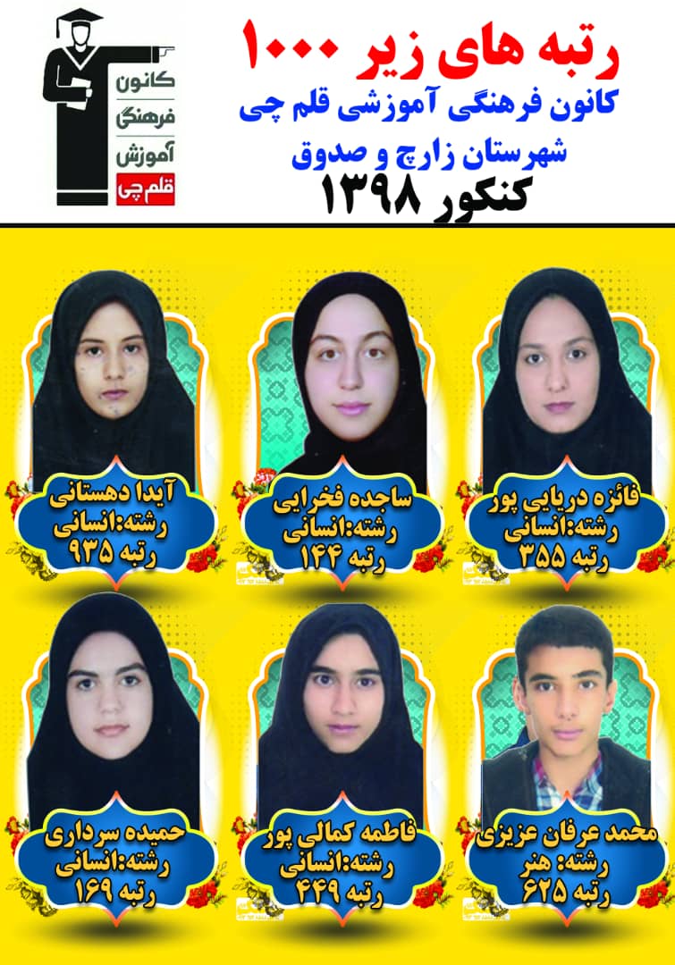 رتبههای زیر 1000 کنکور 98 در نمایندگی زارچ و صدوق را در زیر مشاهده کنید....