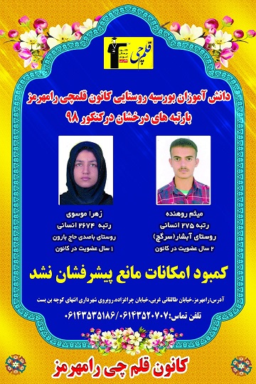 درخشش دانش آموزان روستایی رامهرمز در کنکور 98 را مشاهده کنید .