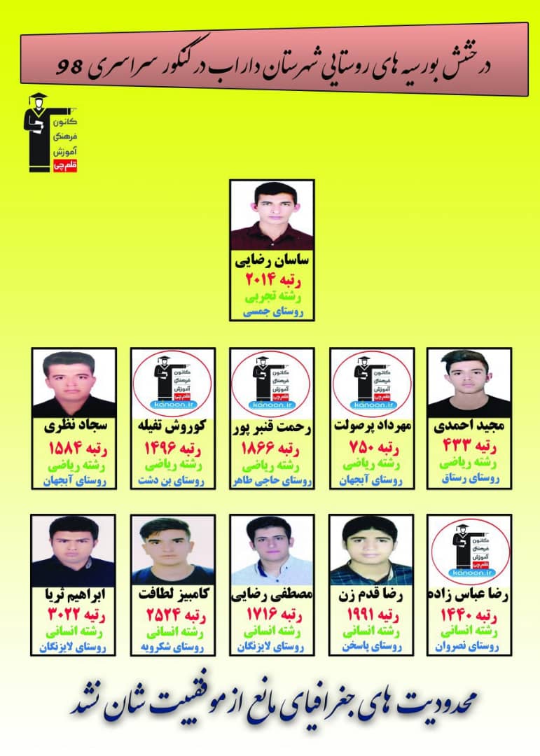 درخشش دانش آموزان روستایی داراب در کنکور 98 را در زیر مشاهده می کنید