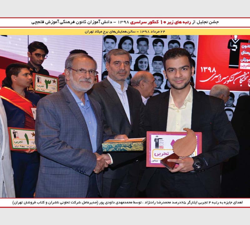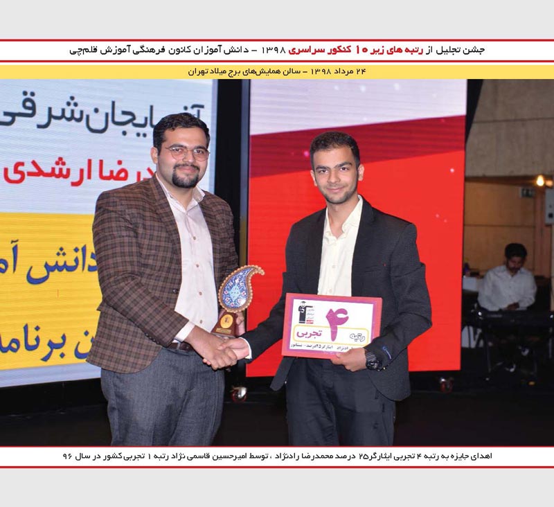 تجلیل ازمحمدرضا رادنژاد رتبه 4 تجربی ایثارگر و امیرحسین قاسمی نژاد رتبه 1 کنکور96 در جشن نخبگان 98 را مشاهده میکنید