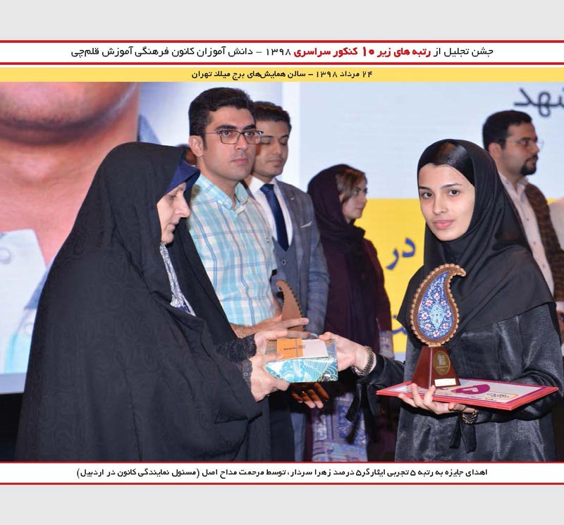تجلیل از زهرا سردار رتبه 5 تجربی ایثارگر و سارا همتی رتبه 1 کنکور 94 را در جشن نخبگان 98 را در زیر مشاهده میکنید