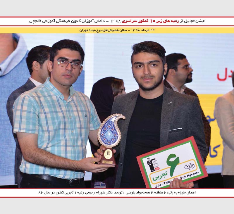 تجلیل ازمحمدجواد یارعلی رتبه 6 تجربی منطقه 3 و شهرام رحیمی رتبه 1 کنکور 86 در جشن نخبگان 98 را مشاهده میکنید