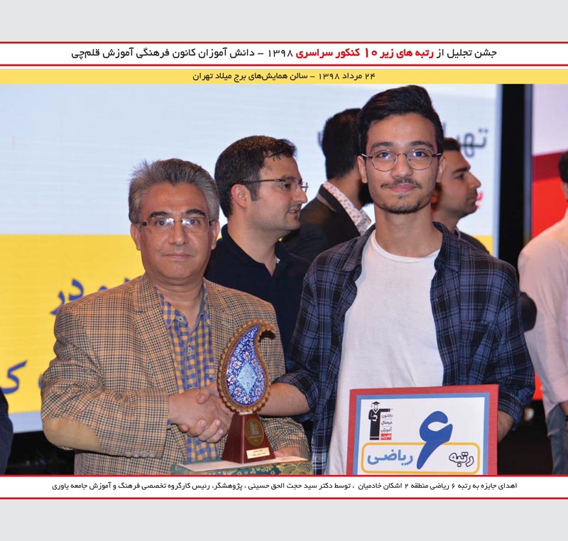 اشکان خادمیان رتبه 6 ریاضی و علیرضا شاطری رتبه 1 کنکور 97 را در جشن نخبگان مشاهده میکنید