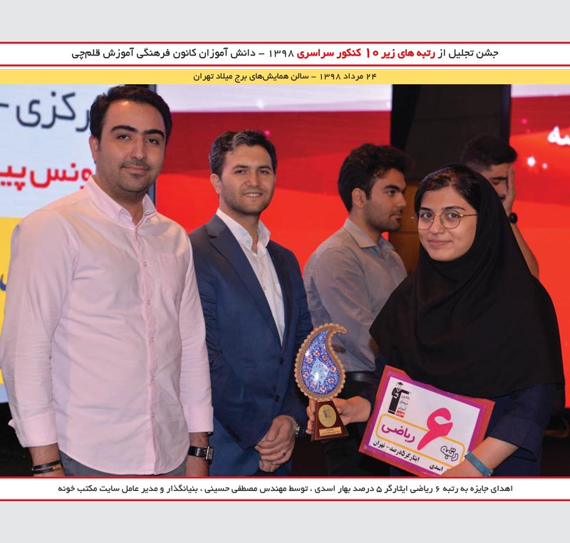 بهار اسدی رتبه 6 ریاضی و مصطفی حسینی را در جشن نخبگان مشاهده میکنید