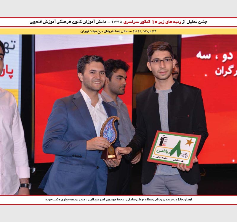 علی صادقی رتبه 8 ریاضی و امیر عبدالهی مدیر توسعه مکتب خونه را در جشن نخبگان مشاهده میکنید