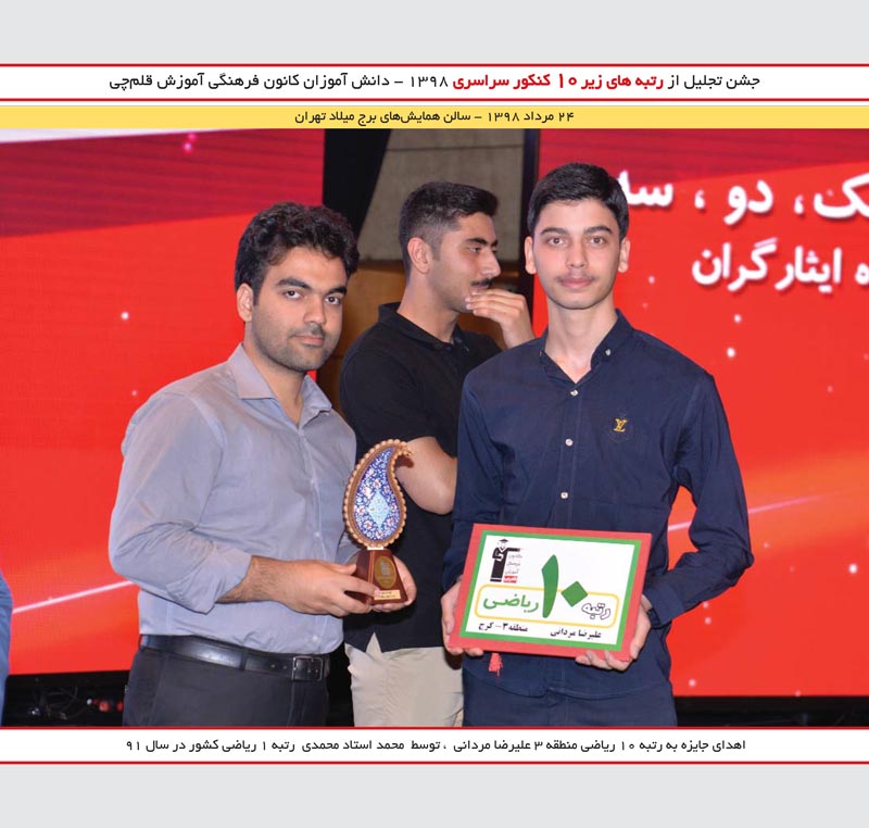 علیرضا مردانی رتبه 10 ریاضی و محمد استادمحمدی رتبه 1کنکور 91 را در جشن نخبگان مشاهده میکنید