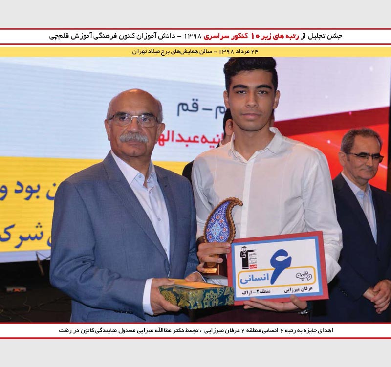 عرفان میرزائی رتبه 6 انسانی و عبداله رئیسیعبداله رئیسی رتبه 2 کنکور 97 را در جشن نخبگان مشاهده میکنید