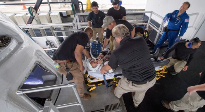 دو فضانورد آموزش دیده اسپیس ایکس داگ هورلی و باب بنکن، در این آزمایش حضور داشتند و کارشناسان به تمرین چگونگی خروج آنها از کپسول فضایی، انتقال به کشتی نجات و پرواز با چرخ بال برای بازگرداندن آنها به ساحل دریا پرداختند.