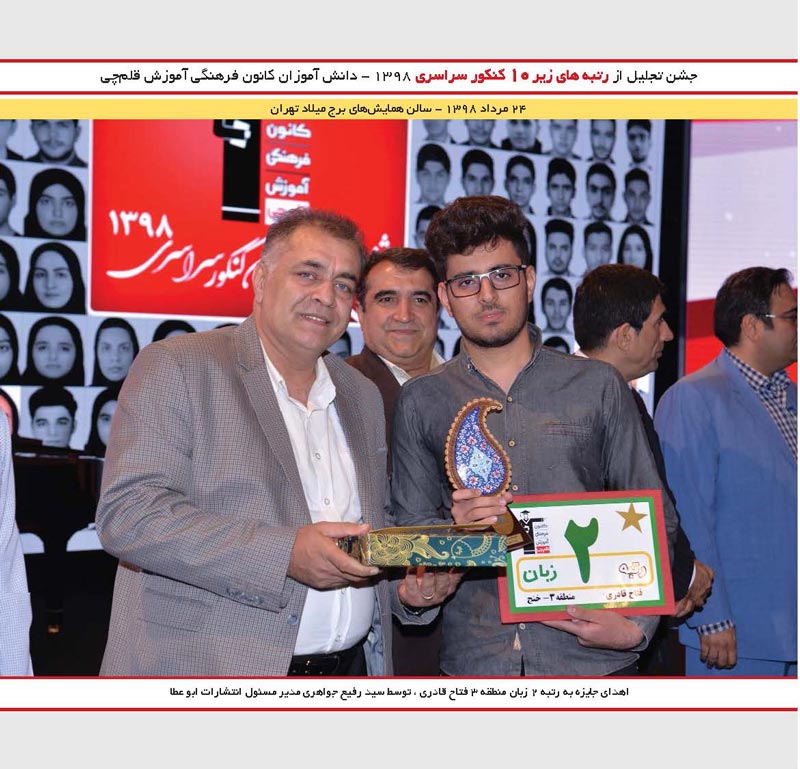 فتاح قادری رتبه 2 زبان و ارشیا زاهدی پور رتبه 1 کنکور 96 را در جشن نخبگان مشاهده میکنید