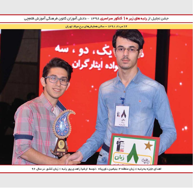 بنیامین داورپناه رتبه 8 زبان و ارشیا زاهدی پور رتبه 1 کنکور 96 را در جشن نخبگان مشاهده میکنید