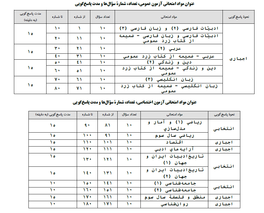 ویژگیهای آزمون 15 شهریور نظام قدیم انسانی کنکور نظام قدیم انسانی