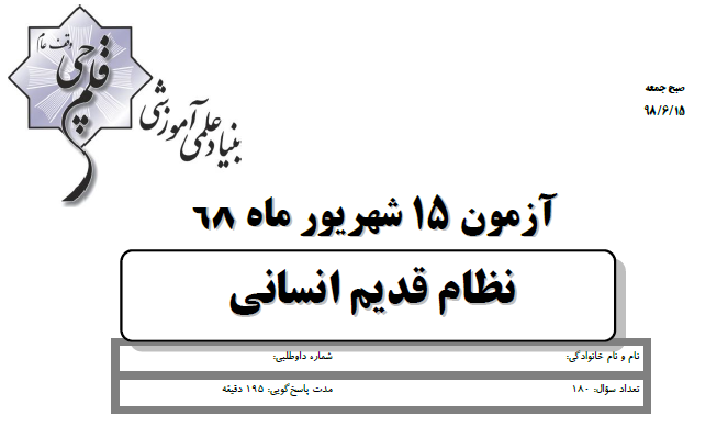 ویژگی های آزمون 15 شهریور انسانی نظام قدیم