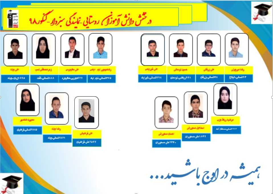 درخشش دانش آموزان روستایی سبزوار در کنکور 98 را در زیر مشاهده کنید .