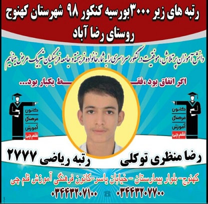 درخشش دانش آموزان روستایی کهنوج در کنکور 98 را در زیر مشاهده کنید .