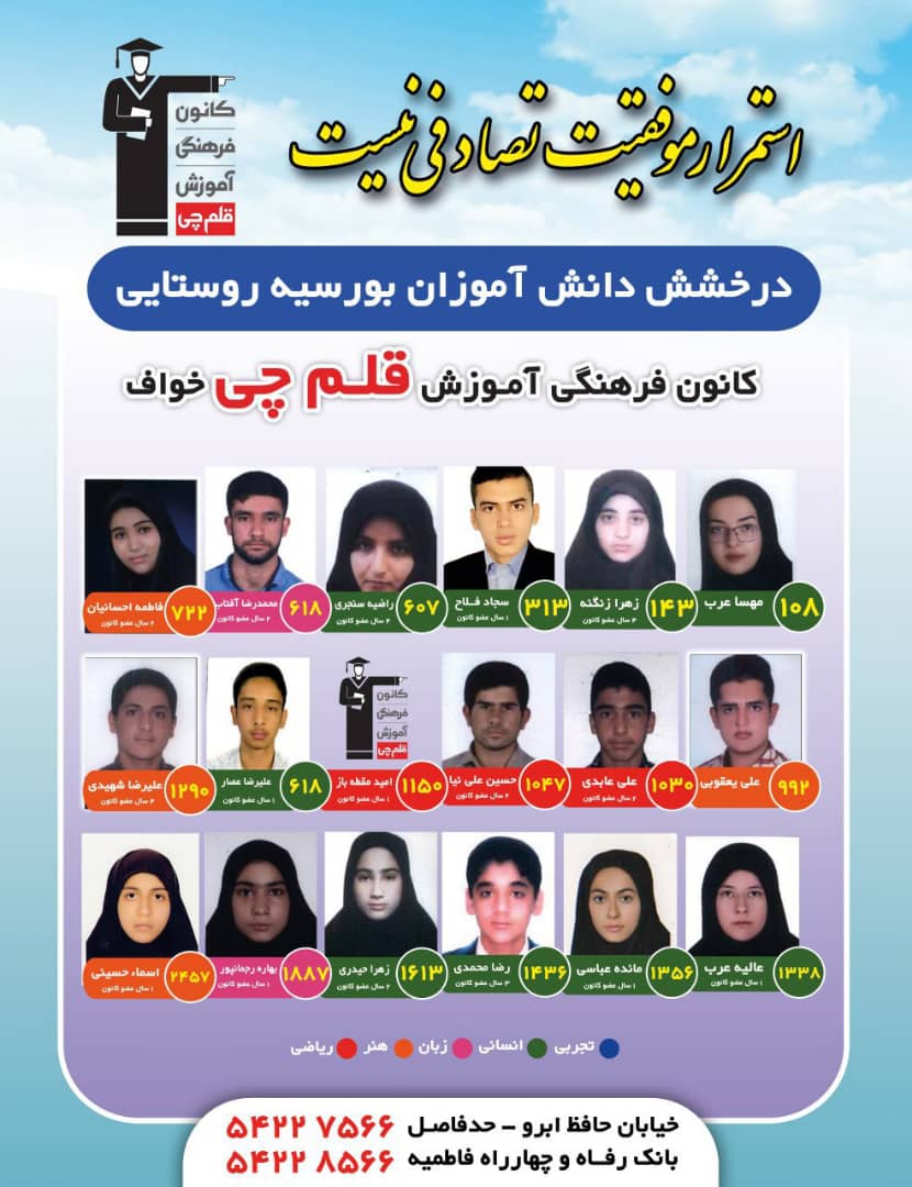 درخشش دانش آموزان روستایی خواف در کنکور 98 را در زیر مشاهده کنید .