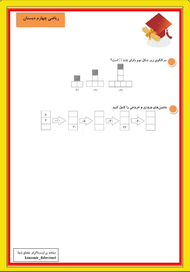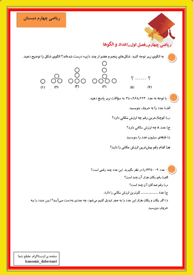 نمونه سوال ریاضی چهارم دبستان_فصل اول (اعداد و الگوها)
