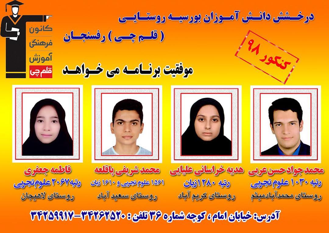 درخشش دانش آموزان روستایی رفسنجان در کنکور 98 را در زیر مشاهده کنید .