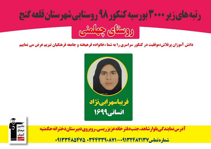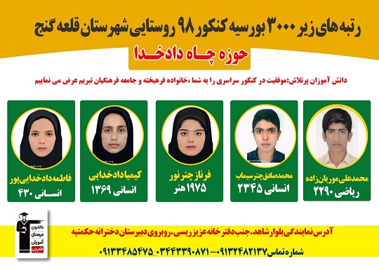 درخشش دانش آموزان روستایی قلعه گنج در کنکور 98 را در زیر مشاهده کنید .