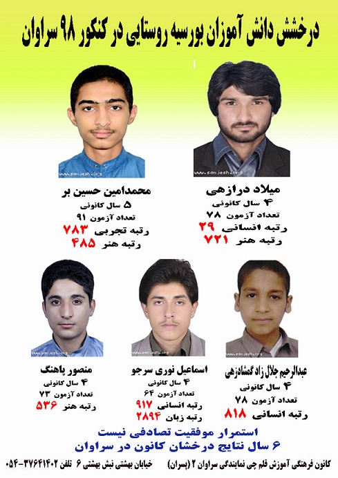 درخشش دانش آموزان روستایی سراوان در کنکور 98را در زیر مشاهده کنید .