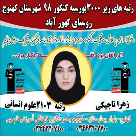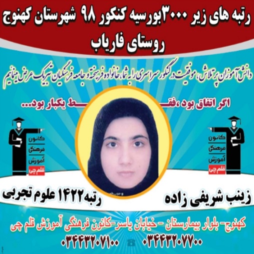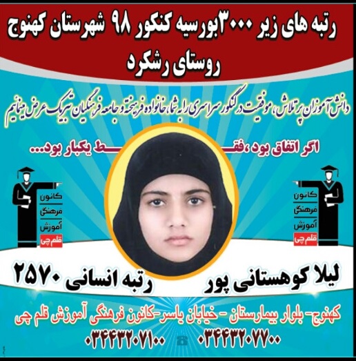 درخشش دانش آموزان روستایی کهنوج در کنکور 98را در زیر مشاهده کنید .