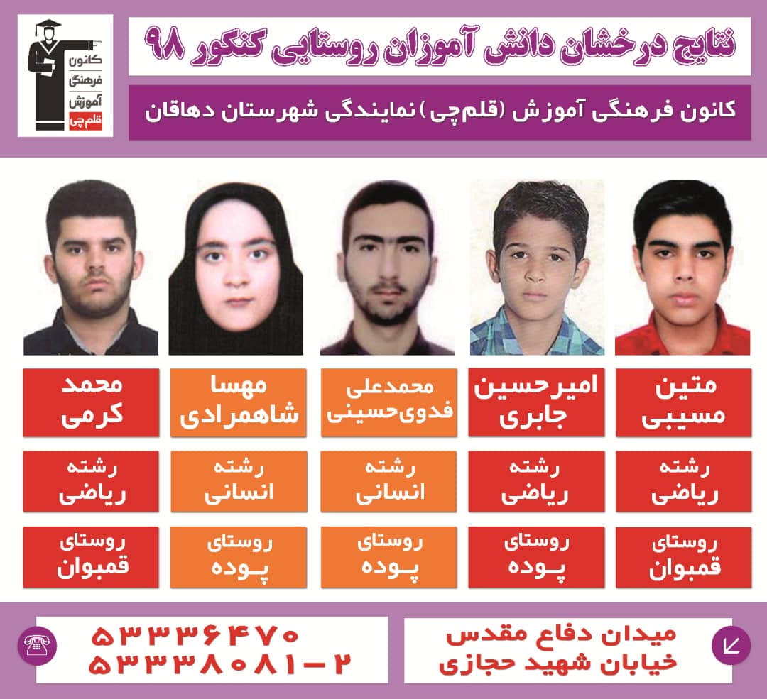 درخشش دانش آموزان روستایی دهاقان در کنکور 98 را در زیر مشاهده کنید .