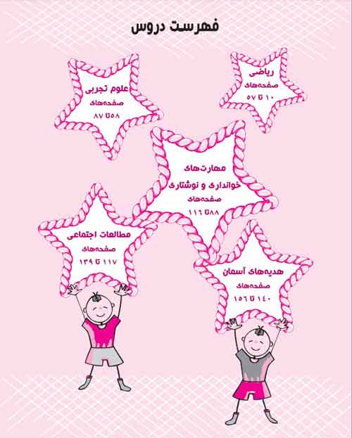 بله، داره، ریاضی، علوم، فارسی، مطالعات اجتماعی و هدیههای آسمان.