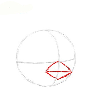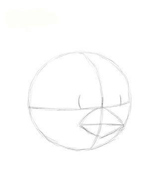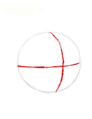 در مرحلهي بعد دو کمان عمود بر هم مطابق شکل ميکشيم اين دو خط، خطهاي راهنماي ما براي ترسيم است.