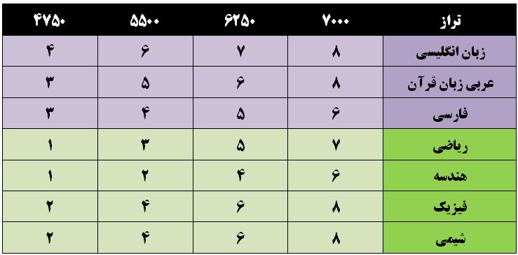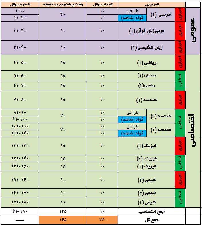 تعداد سوال هر درس و زمان بندی سوالات آزمون 22 شهریورماه