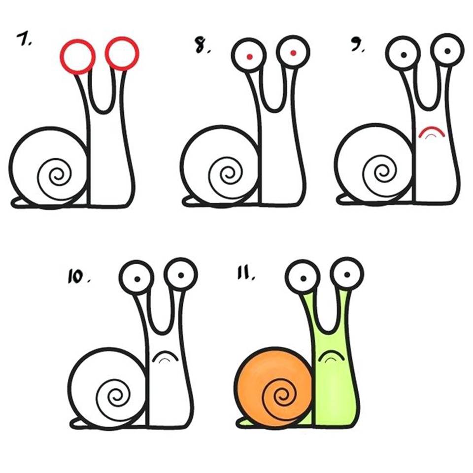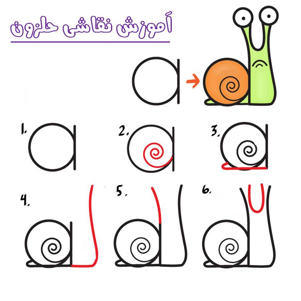 آموزش نقاشی کودکان (آموزش مرحله به مرحله نقاشی حلزون)