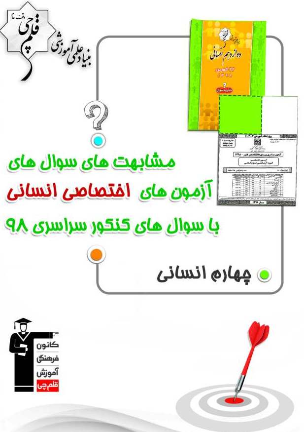 در فایل های زیر، مشابهت سؤالات آزمون های کانون در رشته انسانی (سال تحصیلی 97-98) با سؤالات کنکور 98 انسانی استخراج و بررسی شده اند.** فایل سؤال و پاسخ را دریافت نمایید: