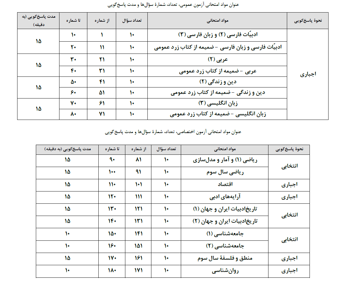 ویژگیهای آزمون نظام قدیم انسانی آزمون 22 شهریور 98