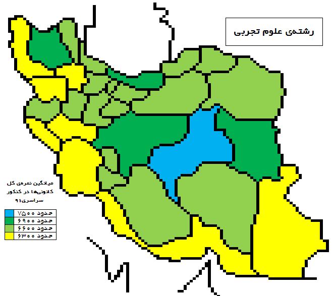 در شکلهای زیر میانگین «نمره کل» کنکور سراسری 91 دانشآموزان