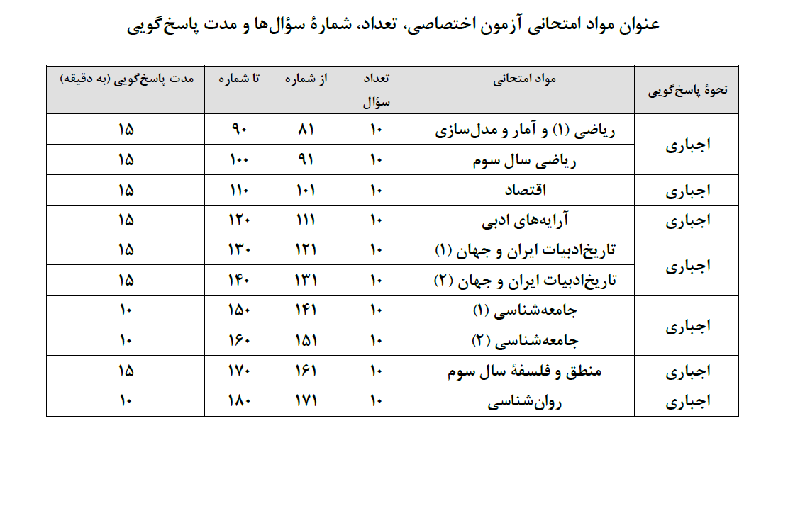 ویژگیهای آزمون 5 مهر فارغ التحصیلان نظام قدیم انسانی