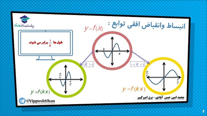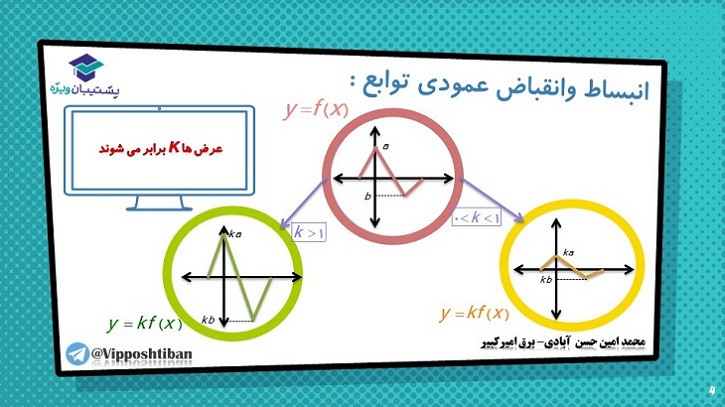 در مطالب زیر نکاتی از طریقه انبساط و انتقباض توابع در جهت عمودی و افقی و طریقه انتقال توابع قرار گرفته است.برای استفاده از دیگر جزوه های رایگان ما و همچنین ویس آموزشی مربوط به این جزوه به کانال پشتیبان ویژه مراجعه نمایید.