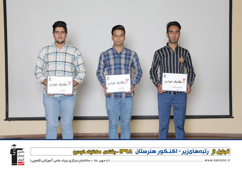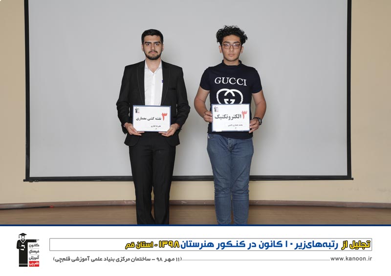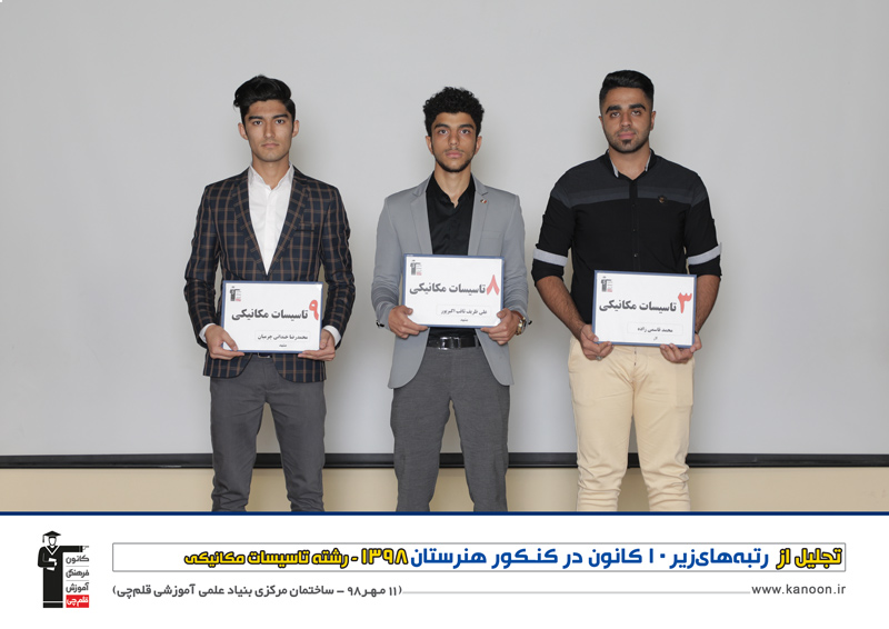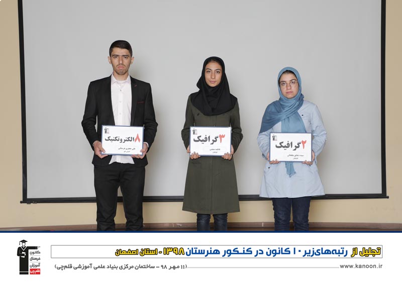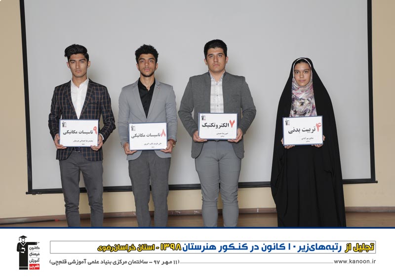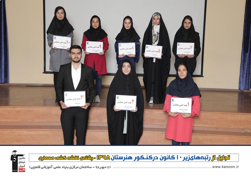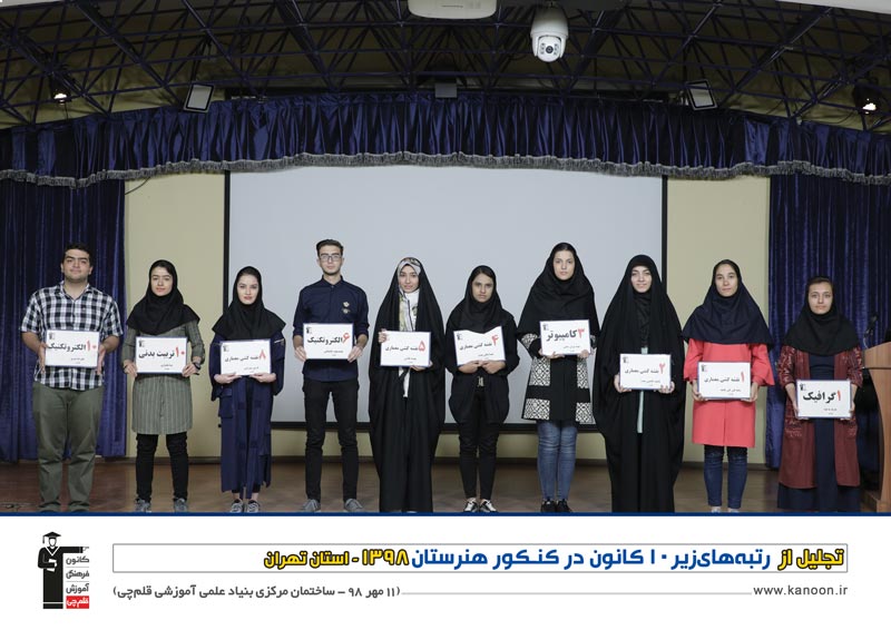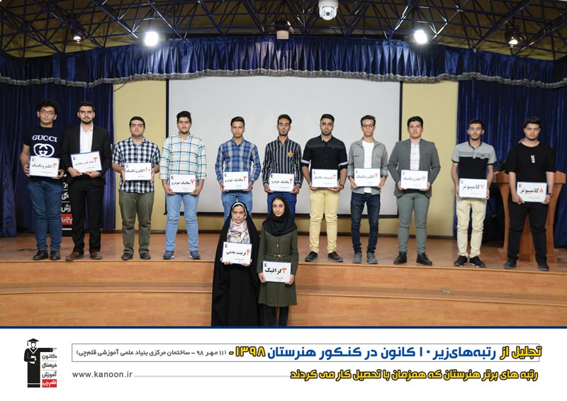 مراسم تجلیل از رتبههای زیر 10 کانون در کنکور هنرستان 1398، 11 مهر در بنیاد علمی آموزشی قلمچی برگزار شد. گزارشی از این مراسم در ادامه آمده است: