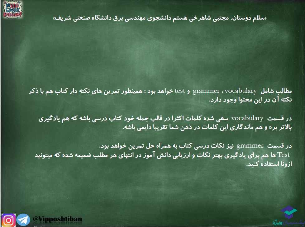 در اسلاید های زیر واژگان و نکات گرامری درس اول زبان دهم برای دانش آموزان تجربی و ریاضی قرار گرفته است.برای استفاده از دیگر جزوه های رایگان ما و همچنین ویس آموزشی مربوط به این جزوه به کانال تلگرام و اینستاگرام vipposhtiban مراجعه نمایید.