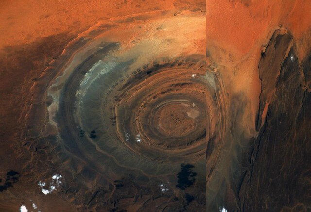 این تصویر صحرای بزرگ آفریقا را نشان میدهد و از فاصلهی ۴۰۰ کیلومتری از سطح دریا ثبت شده است و در آن بخشی از صحرای بزرگ آفریقا که به اصطلاح به چشم "ساهارا" معروف است، دیده میشود.
