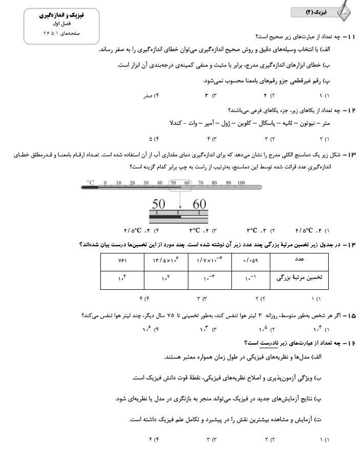 سلام به همه ی دهمی ها عزیزدر این مطلب نمونه سوال تستی فیزیک دهم تجربی -جمع بندی فصل اول و دوم برای آمادگی شما قرار داده شده .