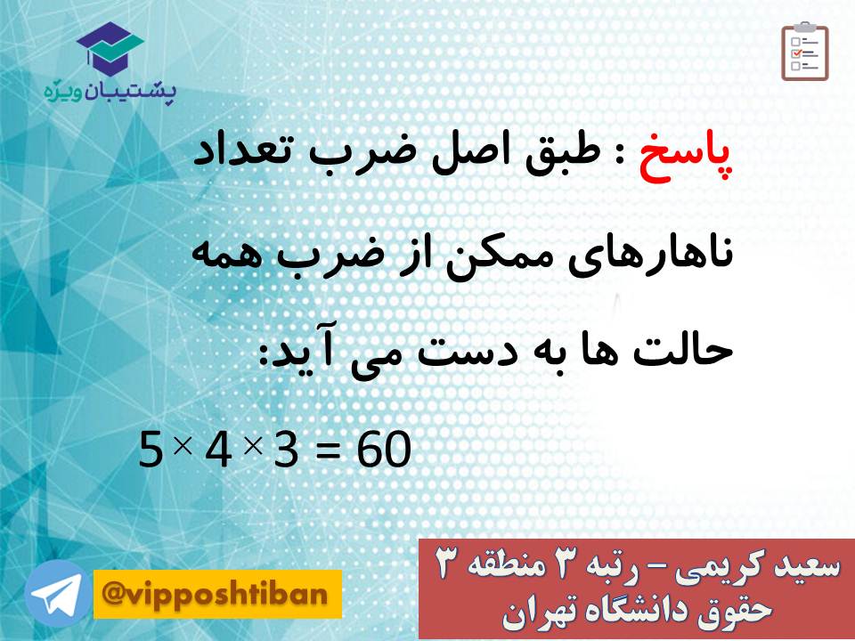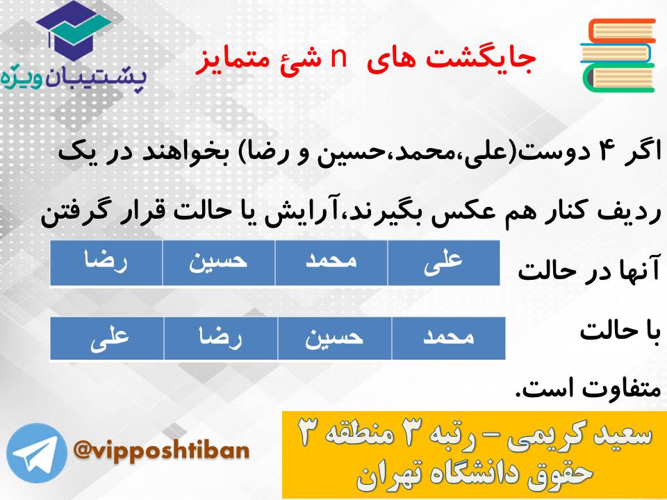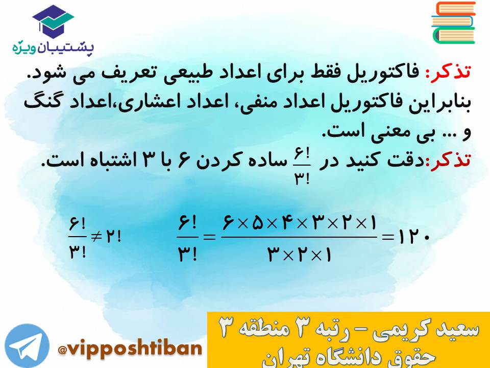 در اسلاید های زیر نکات و تست های کامل و مهمی از مبحث شمارش کتاب ریاضی و آمار دوازدهم انسانی قرار گرفته است.
