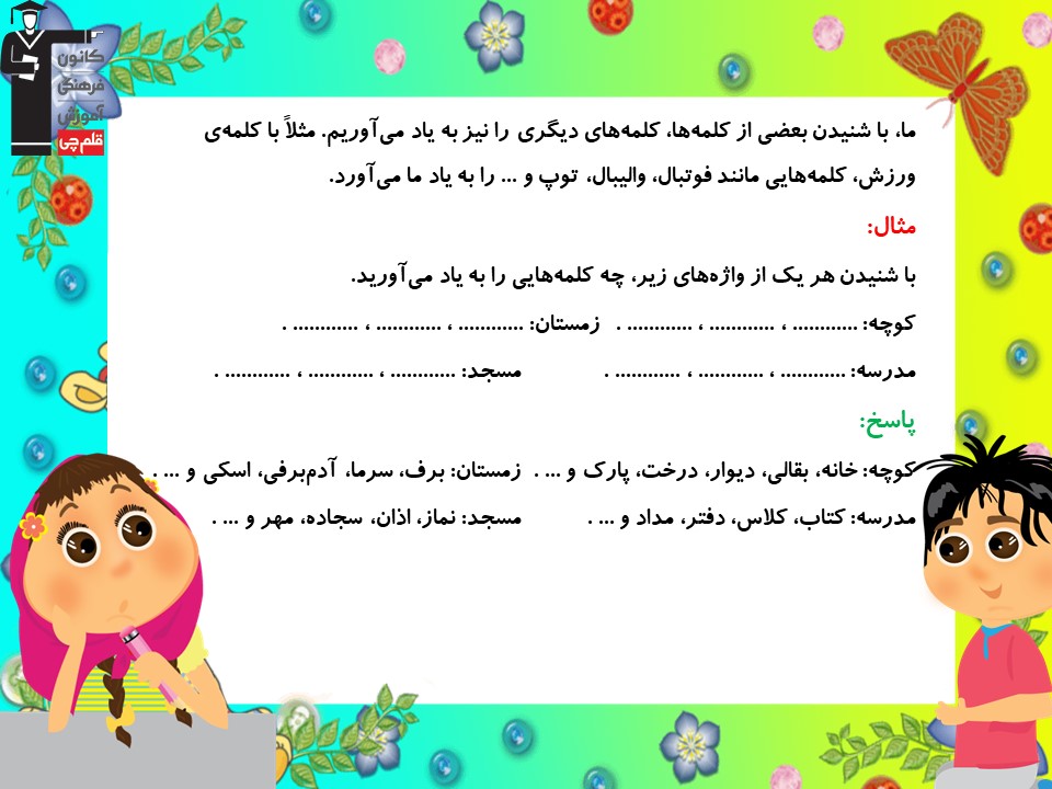 نکات مهم واژه آموزی درس اول فارسی سوم دبستان (محلهی ما)