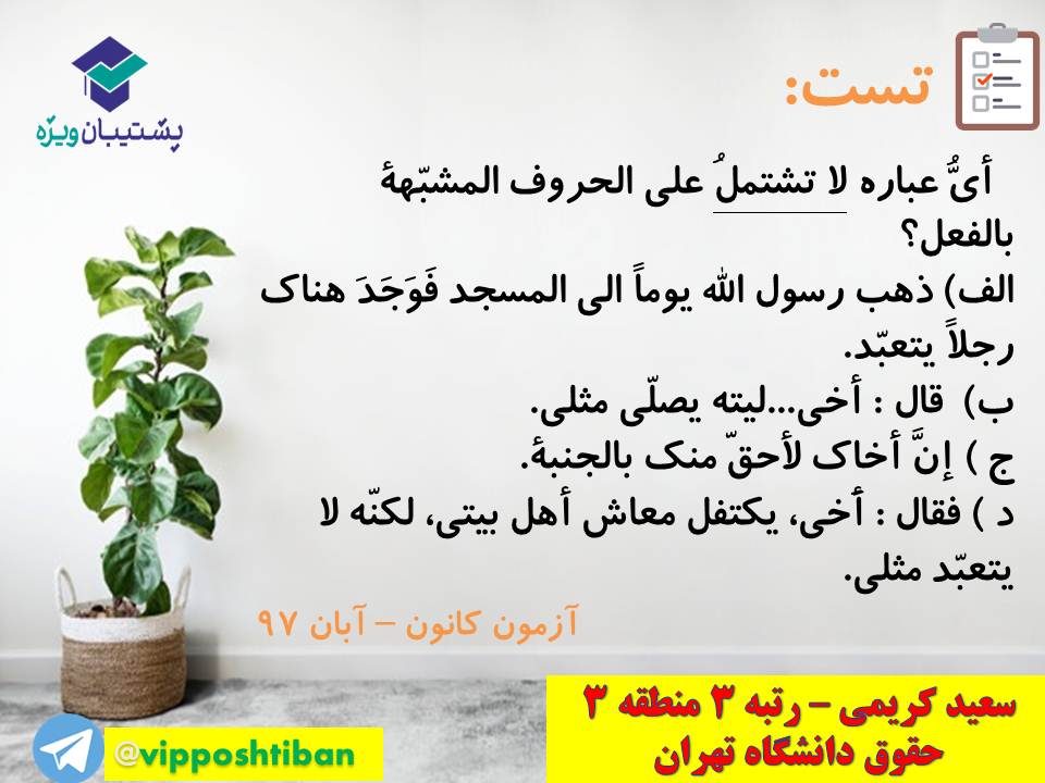 در اسلاید های زیر نکاتی و تست هایی از مبحث حروف مشبه بالفعل برای دانش آموزان انسانی قرار گرفته است.