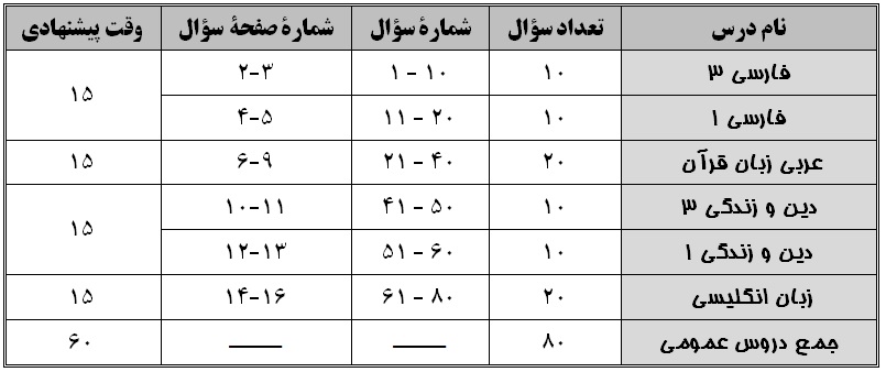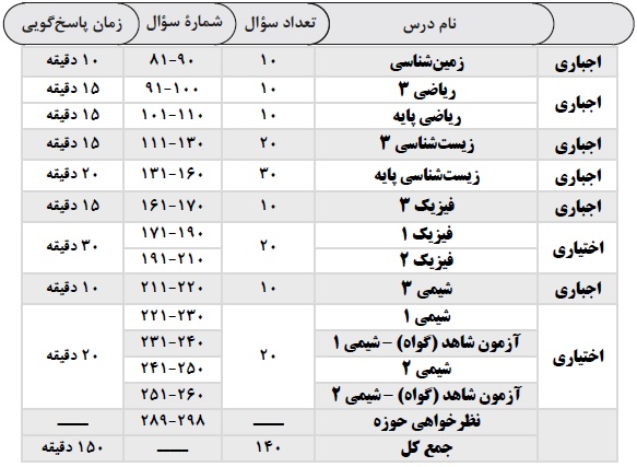 ویژگیهای آزمون 1 آذر به قرار زیر است: