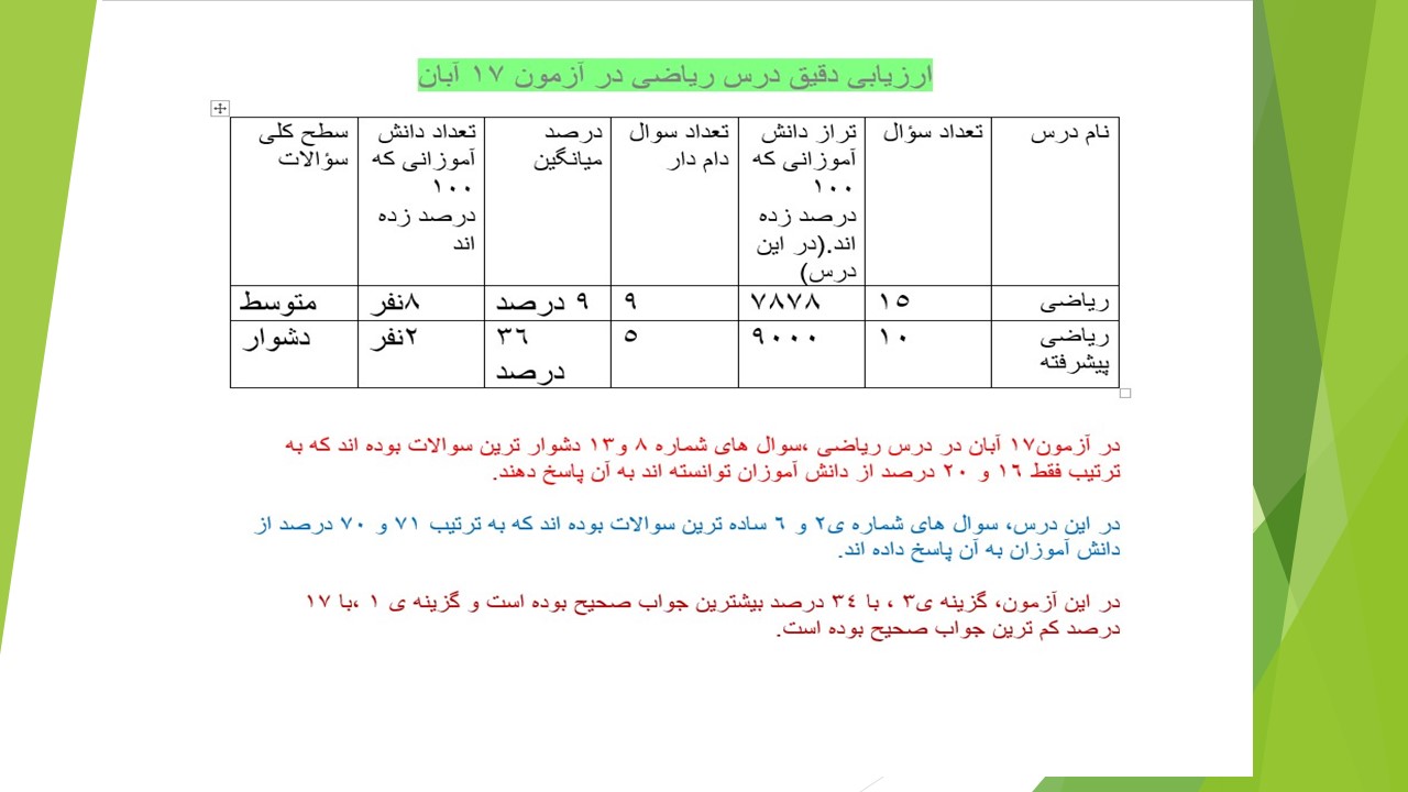 ارزیابی دقیق و جامع از سوالات درس ریاضی_ آزمون 17 آبان