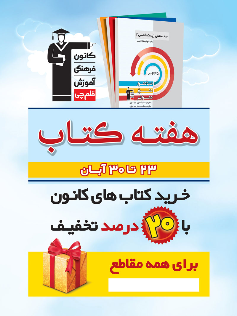 همچنین در هفته کتاب با مراجعه سایت فروش کتاب کانون kanoonbook.ir ، از این تخفیف ویژه 20 درصدی برای خرید اینترنتی بهره مند شوید .