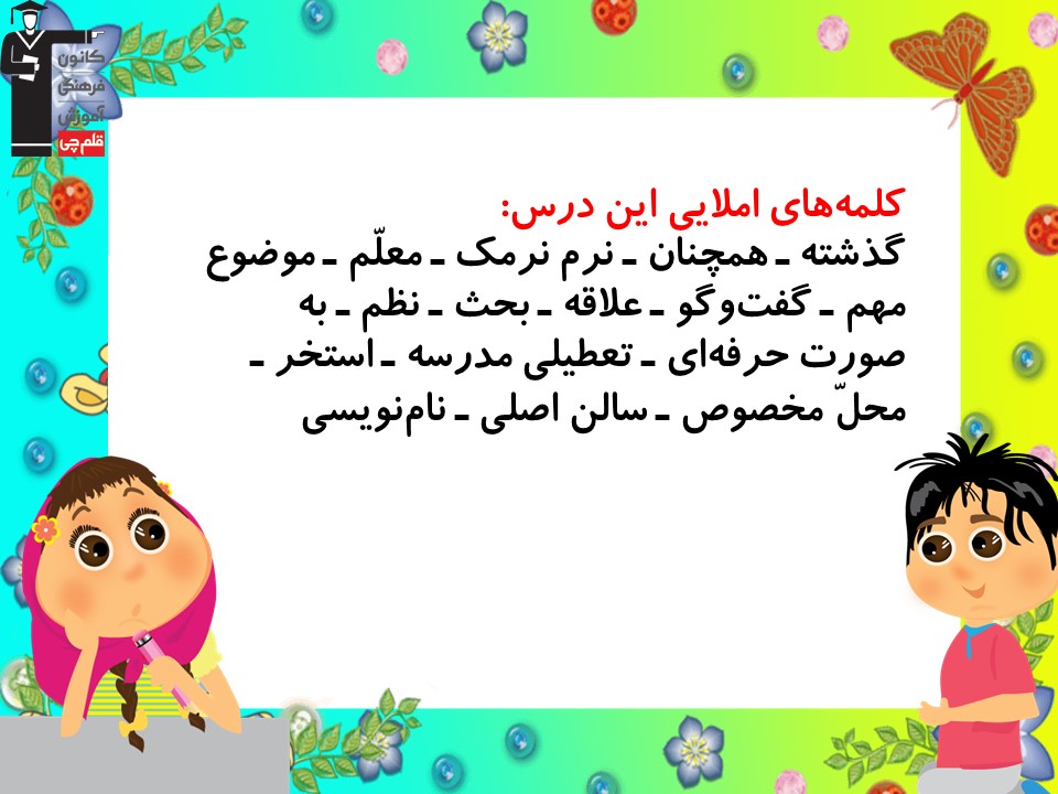 کلمات مهم املایی درس دوم فارسی سوم دبستان (زنگ ورزش)