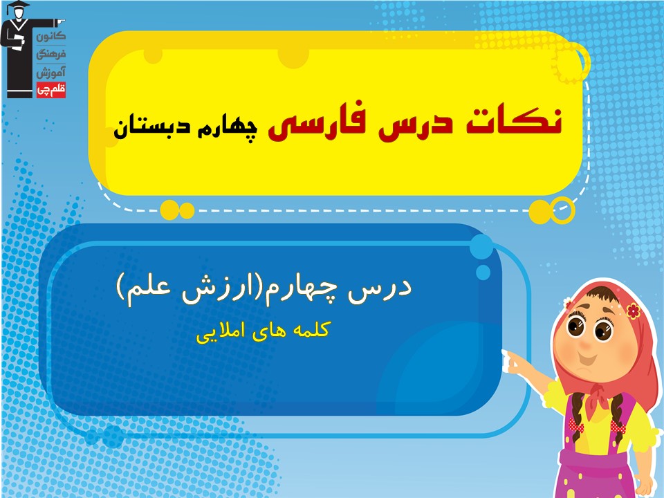 کلمات مهم املایی درس چهارم فارسی چهارم دبستان (ارزش علم)