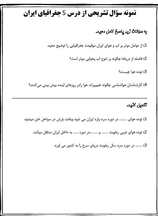 نمونه سؤال تشریحی از مبحث درس 5 جغرافیای ایران دهم انسانی