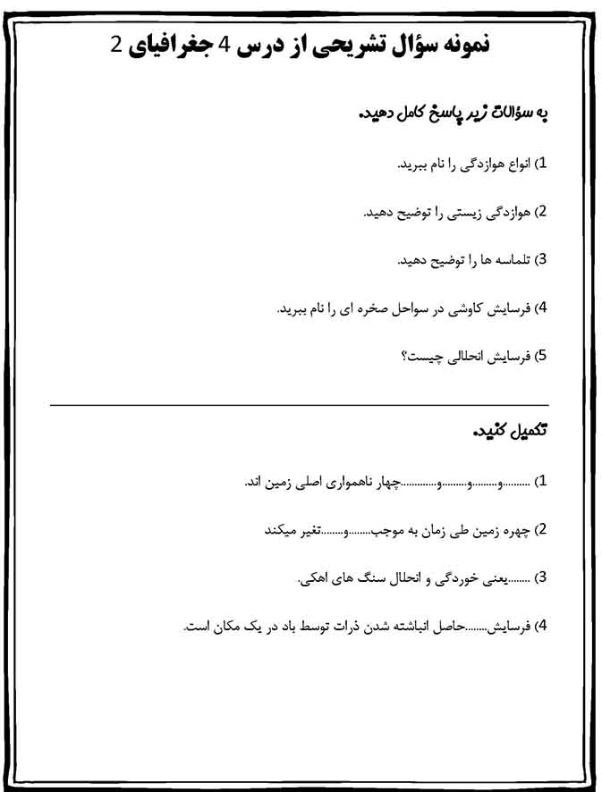 نمونه سؤال تشریحی از درس 4 جغرافیای 2 یازدهم انسانی